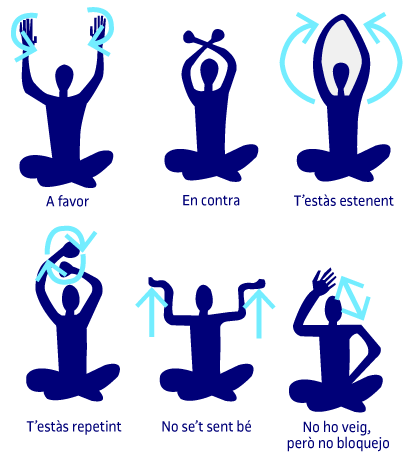 Posteriorment, la PAH va adoptar moltes d’aquestes tècniques de facilitació del 15M per poder estructurar el moviment, les quals va sintetitzar en el Manual de facilitació de la PAH (PAH, 2014), sistematitzant, entre altres qüestions, els codis gestuals. Aquesta gestualitat possibilita, a aquelles persones amb dificultat o inseguretat per prendre la paraula, la possibilitat de contribuir a allò col·lectiu. I facilita a tot el conjunt poder seguir la construcció d’acords col·lectius tenint en compte la retroalimentació transmesa.